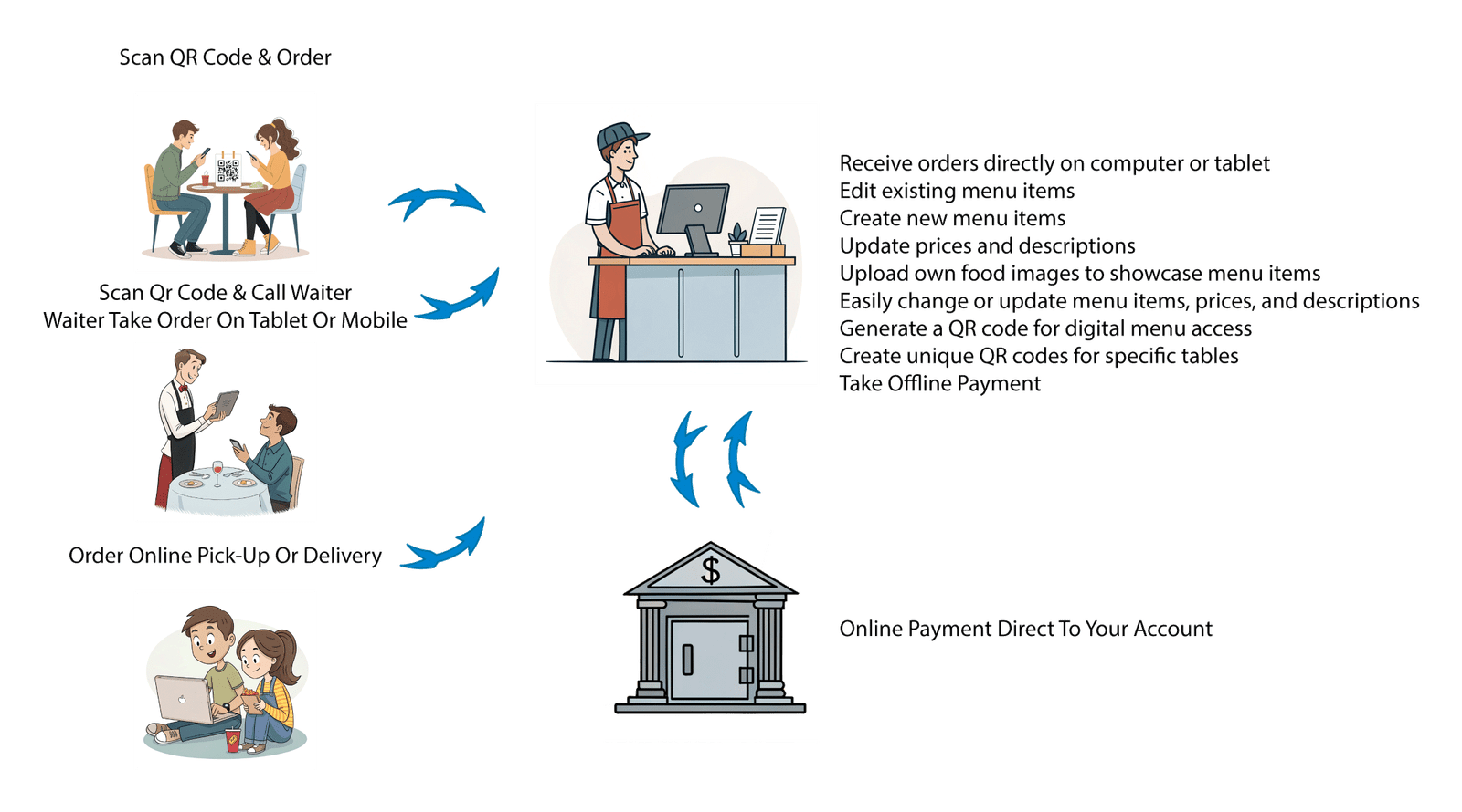 You can create your own menu with self design QR Code. Also multiple QR template makes it better.